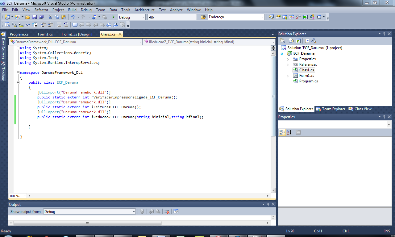 Com ele aberto, vamos declarar as funções de LeituraX e ReduçãoZ. Para isso, abriremos o nosso Class1, onde declaramos a DLL no artigo anterior.